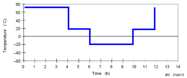 步骤4:在30min内环境温度上升到20°C ±5°C,并保持至少2h. 步骤5:重复上述步骤4个循环。