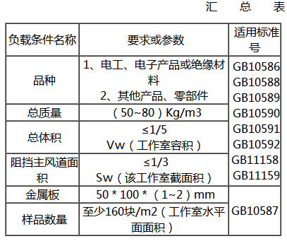 A)负载品种:一般可用电工、电子产品或其它产品、零部件及绝缘材料等(盐雾试验除外)